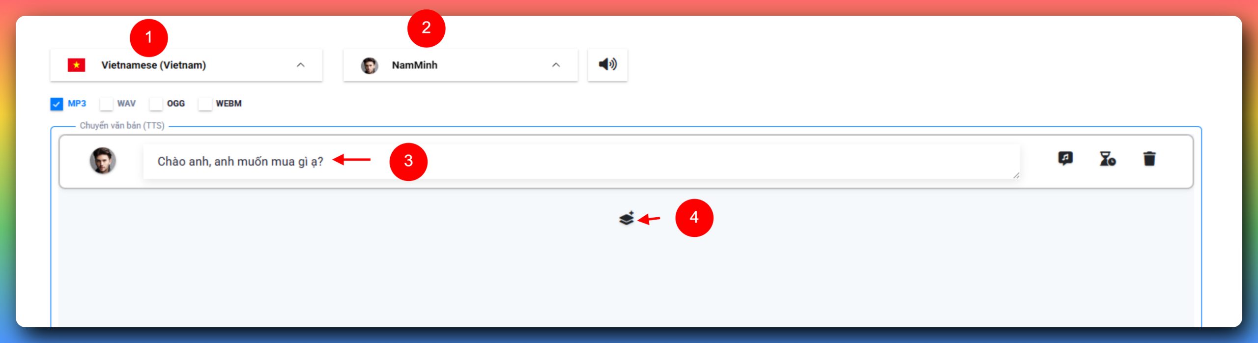 Bước 1. Chọn Ngôn ngữ và chọn giọng đọc cho nhân vật 1 .